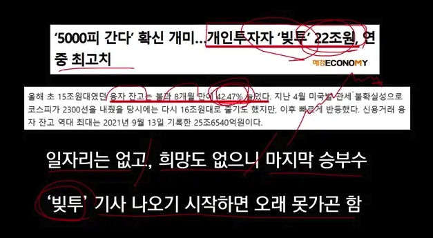 일자리를 찾기 어려운 젊은 층은 '마지막 승부수'로 주식 시장에 뛰어들고 있습니다. 빚을 내어 투자하는 '빚투' 규모가 22조 원을 기록하는 등 위험한 투자가 급증하고 있지만, 이는 장기적으로 좋은 결과를 기대하기 어렵습니다.
