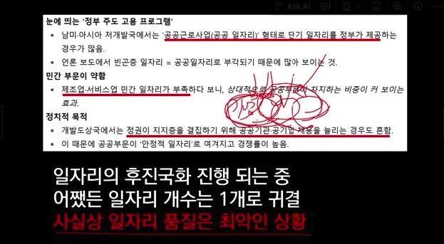 - 개발도상국의 특징: 민간 일자리가 줄어들고 정부 주도의 공공 일자리가 늘어나는 현상은 경제가 쇠퇴하고 있는 개발도상국에서 흔히 볼 수 있는 패턴입니다.