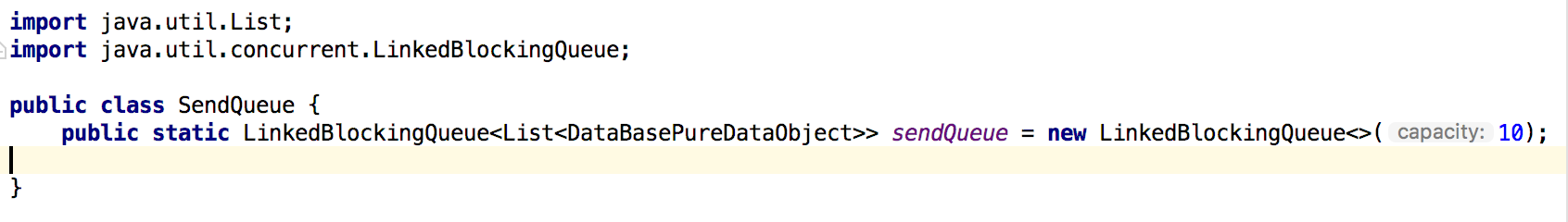 아래 이미지는 LinkedBlockingQueue<List> 예제이다.