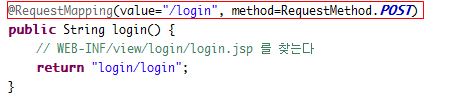 WEB-INF/view/login/login.jsp 를 찾는다.
