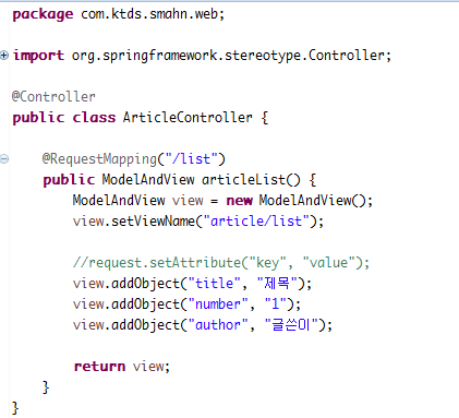 ModelAndView : 데이터를 전송시킬 수 있는 리턴 타입